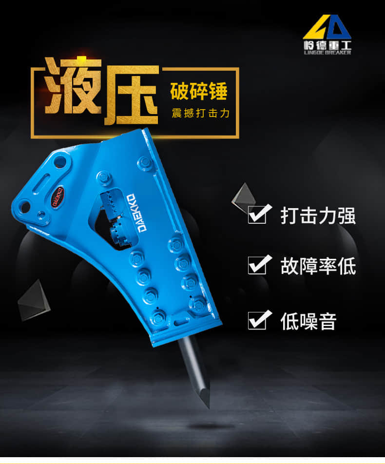 液壓破碎錘簡稱\\\\\\\\\\\\\\\"破碎錘\\\\\\\\\\\\\\\"或\\\\\\\\\\\\\\\"破碎器\\\\\\\\\\\\\\\",液壓破碎錘的動力來源是挖掘機、裝載機或泵站提供的壓力,它能在工程施工中能更有效的破碎石塊和巖石,提高工作效率。選用液壓破碎錘的原則是根據(jù)挖掘機型號、作業(yè)的環(huán)境來選擇適合的液壓破碎錘。