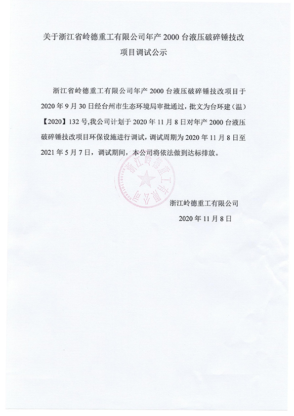 關(guān)于浙江省嶺德重工有限公司年產(chǎn)2000臺(tái)液壓破碎錘技改項(xiàng)目調(diào)試公式